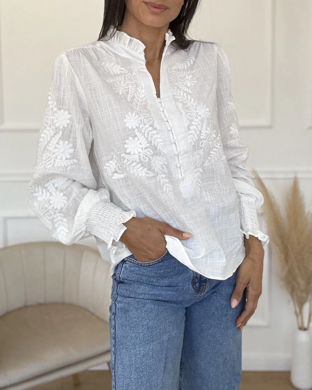 Descubrí la Blusa Malibú, una prenda que destaca por sus detalles bordados delicados y su confección en 100% algodón, garantizando frescura y comodidad durante todo el día. Ideal para un look casual y elegante, es perfecta para combinar con jeans o pantalones sastreros.