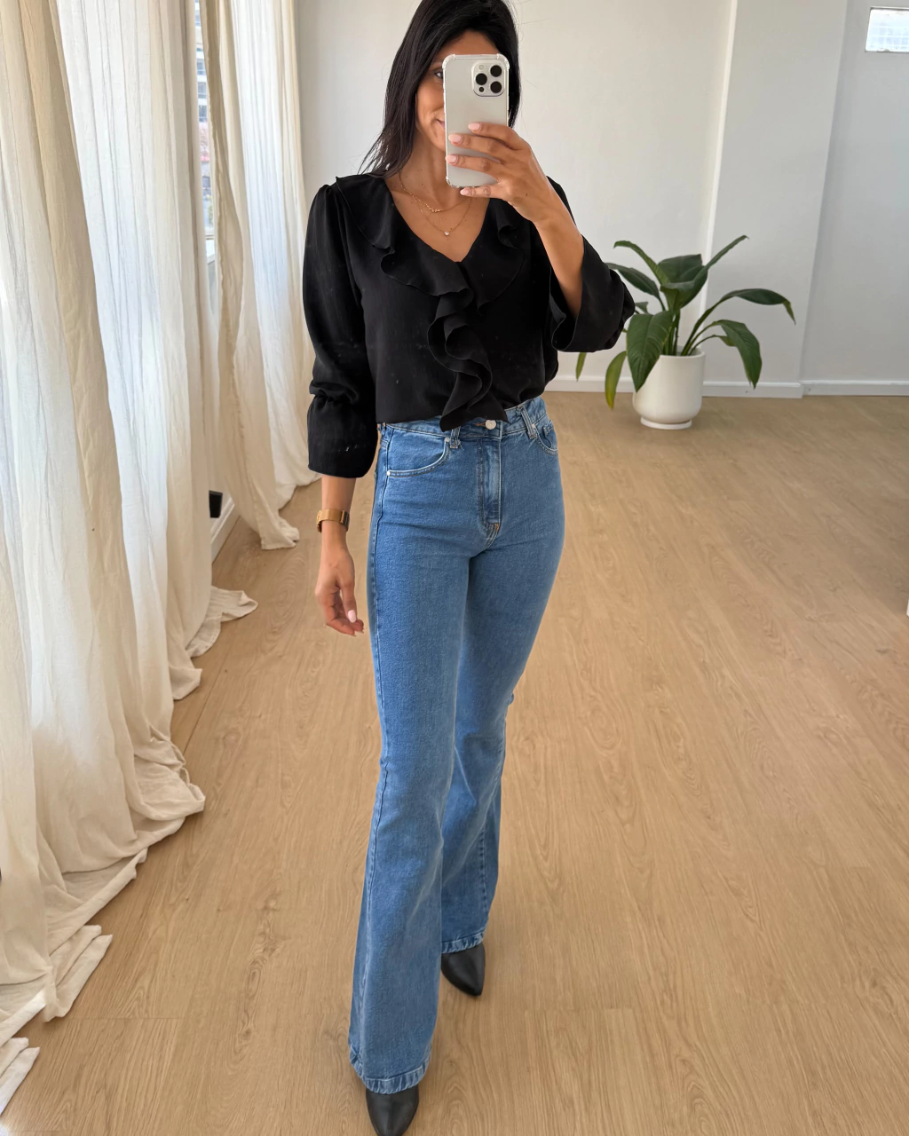 Combiná este jean con blazers (Blazer Paris)y blusas (Camisa Megan) para lograr un look elegante y sofisticado, perfecto para la oficina o eventos especiales.